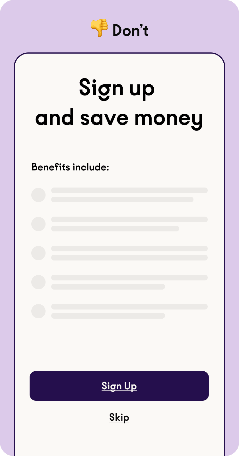 💡 Quick Tip: Lead with benefits, not features. Frame choices in terms of what users gain rather than what they avoid. The same information packaged differently can turn hesitation into action.